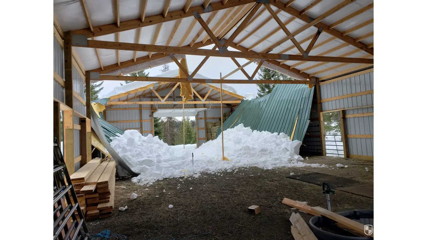 Fast forward 1 1/2 years after construction is done, 1/3 of my roof collapsed. It only had 20 inches of snow on it. This is less than 30lbs/sq ft of snow load. Even though I requested a snow loading of 60 lbs/sq ft, they built it to 35 lbs/sq ft and I signed the contract without reviewing the font size 8 notes (buyer beware on this one). They are claiming "Ag Exemption" for the low snow load. Regardless, it was designed for greater than the snow load that caused the roof to collapse. They will not honor their warranty. Their engineers are claiming it's an act of god and failed because the 20 inches of snow were greater than the 35lbs/sq ft they designed to. When I pointed it out that this is not so, they told me I was out of the warranty period. Their warranty clearly states "Cleary will repair or replace, free of charge, any portion of the structural framework installed by Cleary, including roofing and siding panels, if damaged by snow which does not exceed the design load, within five (5) years of the completion of the construction and while Purchaser is the owner of the building." I was told to contact my insurance company and they could dispute it if they chose.