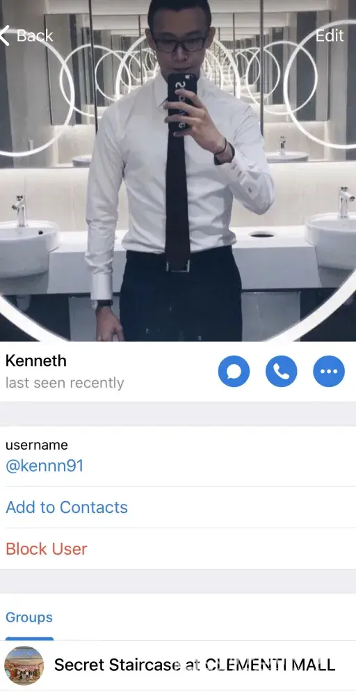 Another fatty soliciting for fun in the public places at Clementi Mall is this guy called JC, whose user id on Telegram is broadwayboy
