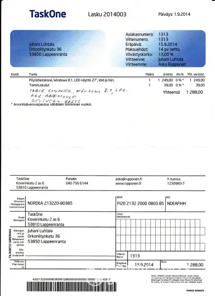 I yesterday re-ordered and this time installed successfully, with the viitenumero [protected], paid by my wife's Nordea credit card (name Viveka Höijer-Brear).