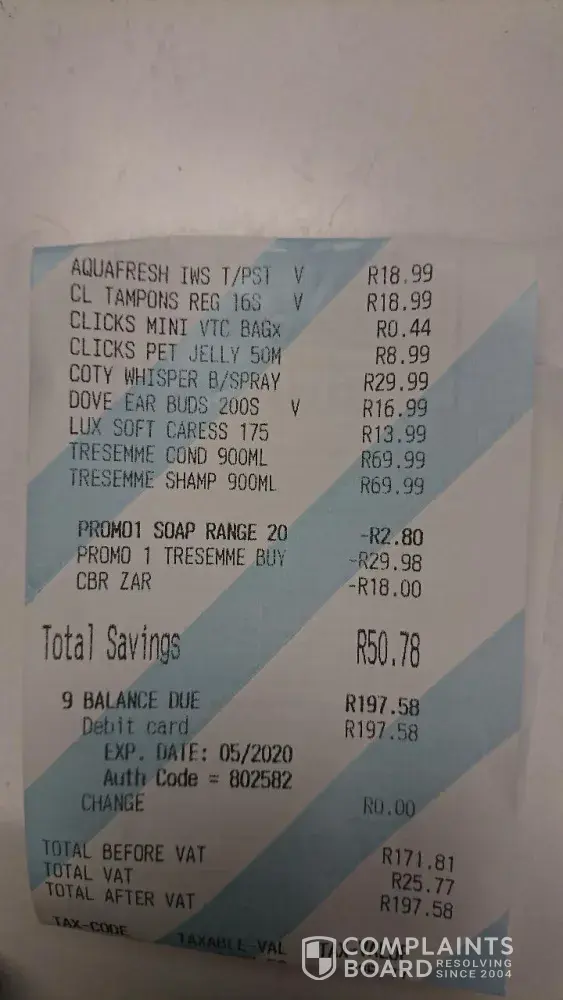 I have two complaints. I visited the Clicks at the Worcester Mall on Saturday 25/8/2018.