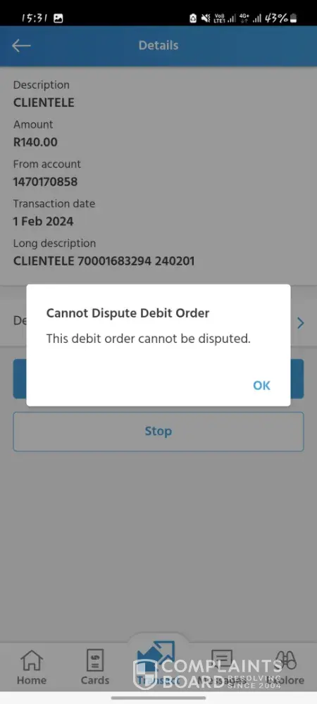 I want to stop the debit order asap