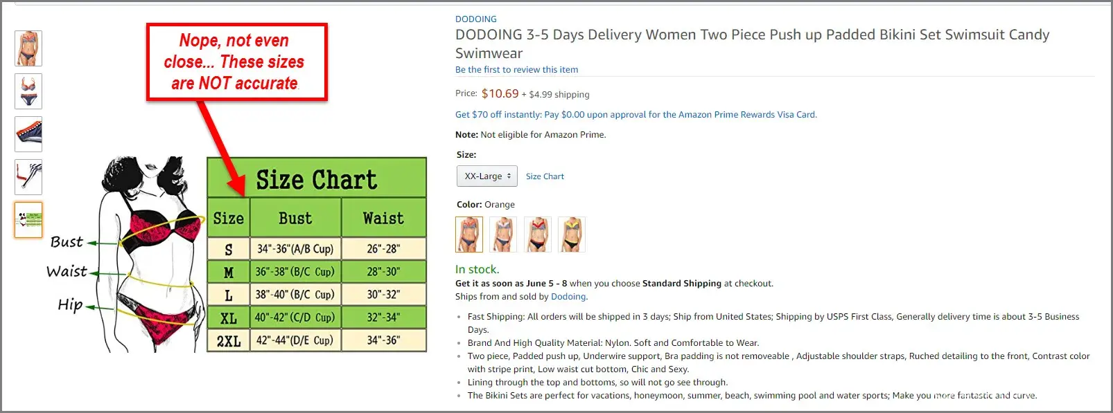 Read full complaintYuan Cheng Global Inc DBA Dodoing on Amazon.com - swimsuit I purchased from dodoing on amazon
