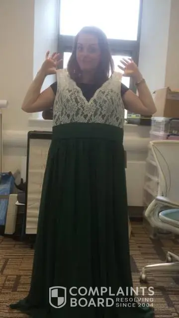 The dress I custom ordered has arrived but is not the colour shown on your website. The dress I ordered was green all over. The one that has arrived today has white lace at the top. This does not match the item displayed on your website - thus does not match the listing on your website and was sold wrongly! I have attached an image of the dress recieved and an image of the dress that is listed on your website.