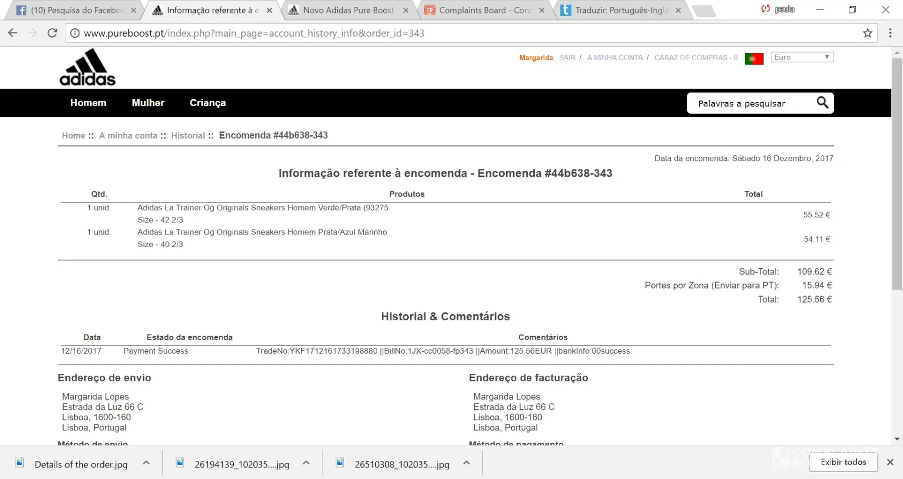 Good Morning Pureboost I would like to report the wrong mistake done by Pureboost.pt. I received yesterday 2 ugliest pair of tennis I've ever seen. Total different from my order #44b638-343. I do not want the money back but get the 2 pair of snickers ordered both with NUMBER 40 2/3 if they are adidas original. I ordered 2 pair with different colours. Being...