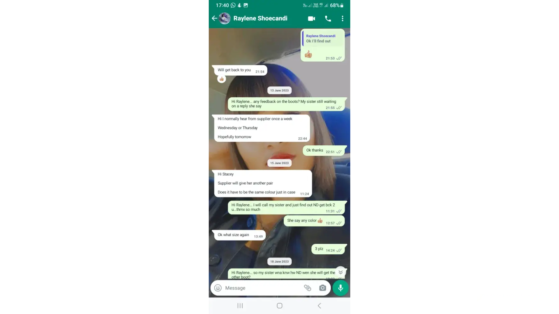 I am complaining about a woman who buys in bulk at milano footwear and her company is called shoecandi. I order a pair of boots in the tan color, she sent wrong color and accepted that, paid the boot and drlivery fee for the van. Then I wore it for the first time and the right back support of the heel collapse and then I sent her pics and a video but she...