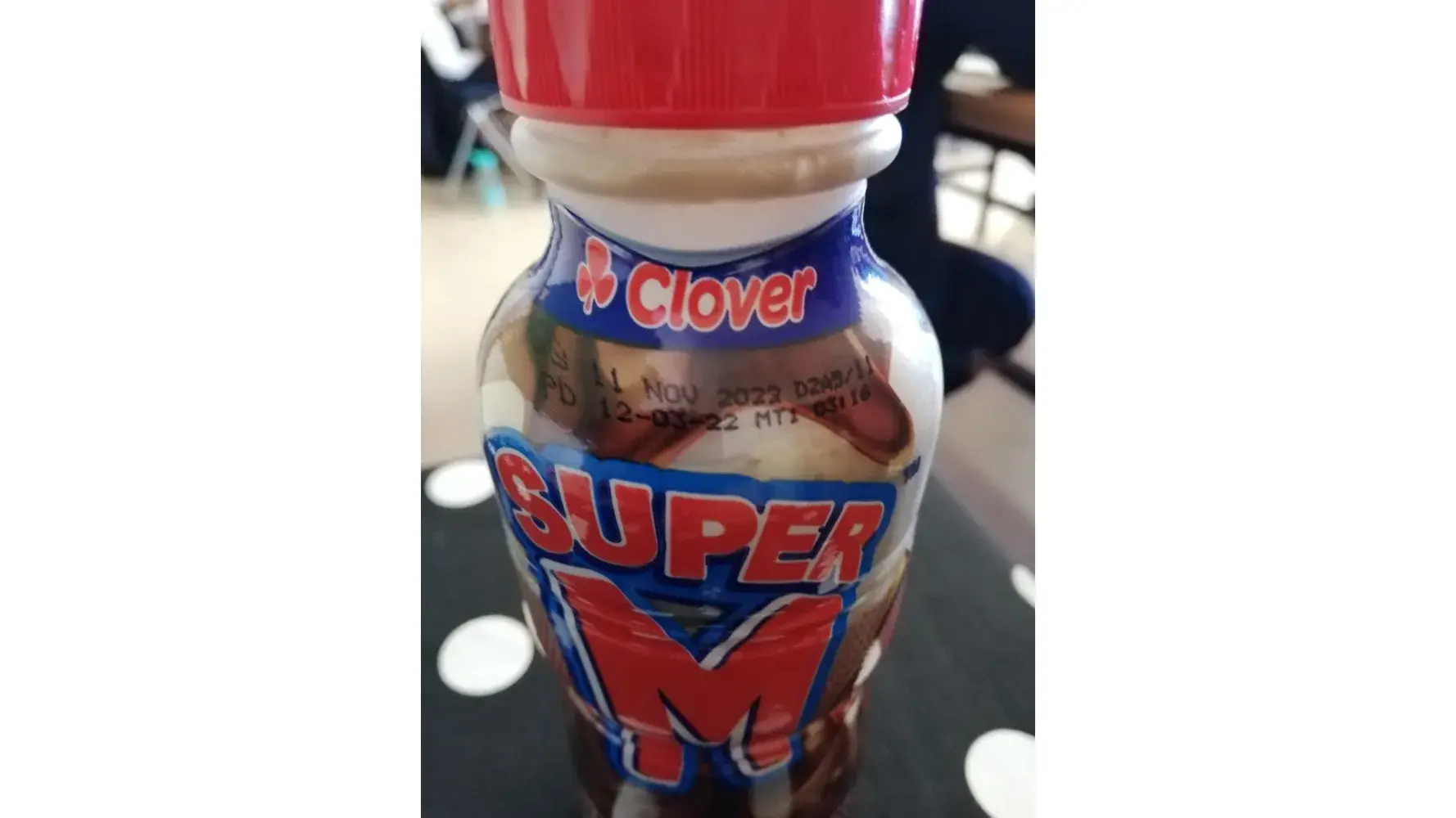 The SuperM was not only off but green in colour. My child could have been in hospital from poison due to clovers' negligence. All that Spar could tell me was that I need to speak to clover and they will remove their milk shakes off the shelf.