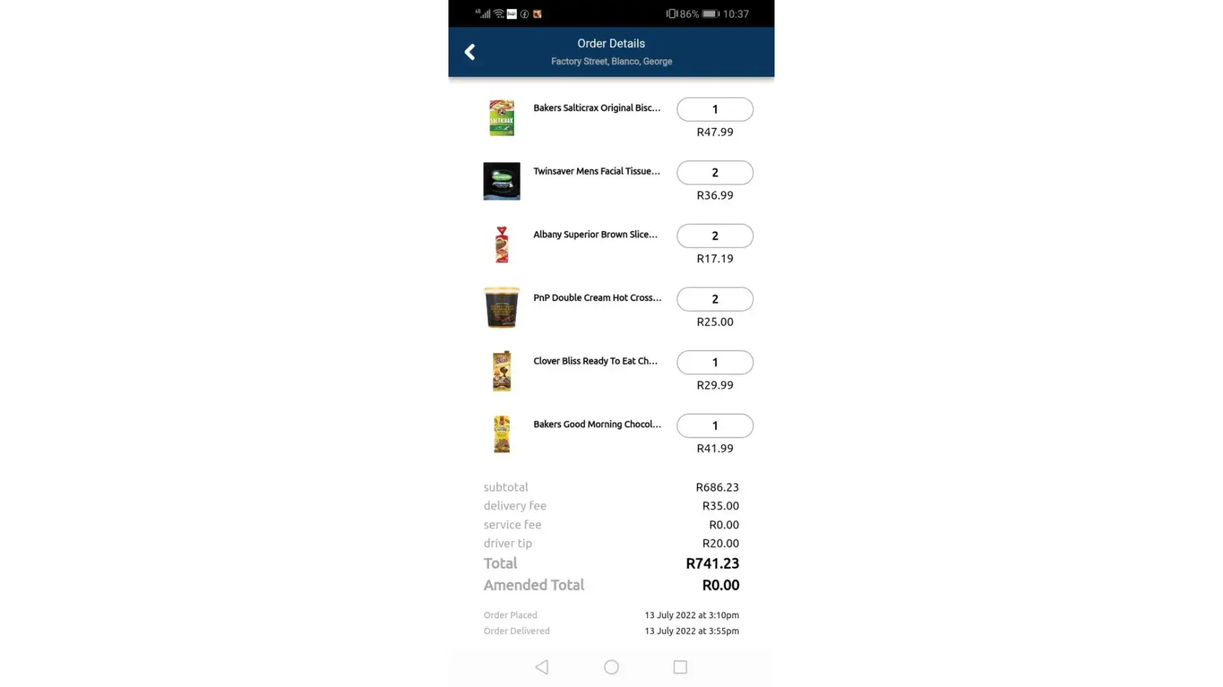 We received the last delivery on 10 October, executed by the Menlyn Checkers branch.