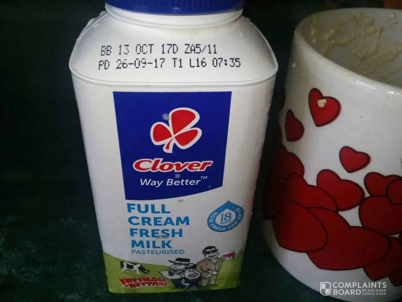 I bought a 2 x 2Ltr milks last week 7th September 2017 with an expiry date of 12 September 2017 at Checkers hyper Kenilworth - get home to make a cup of tea and the milk is sour - i smell the other 2 Ltr bottle and it was sour too, i had to toss 4 Ltrs of milk away and run back to shop to get more milk. i find this totally unacceptable as clover is a well known brand milk is not the cheapest !
