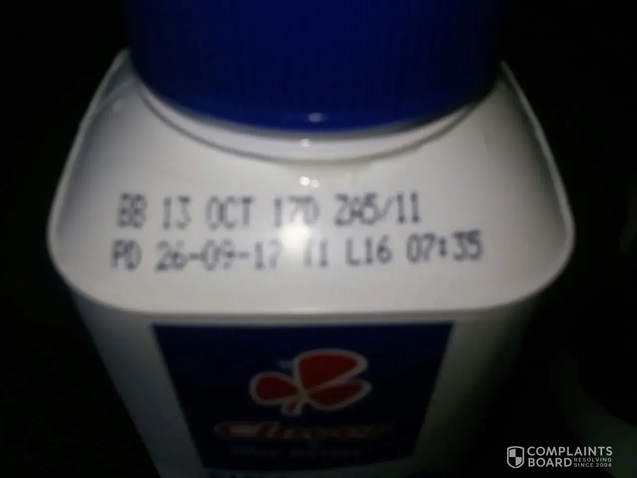 On the 25th of July 2017 I bought 2 clovers drinks and on my way home I opened one and it was sour. I checked the date and both had expired.one on the 7th of July and the other one on the 21st of July.