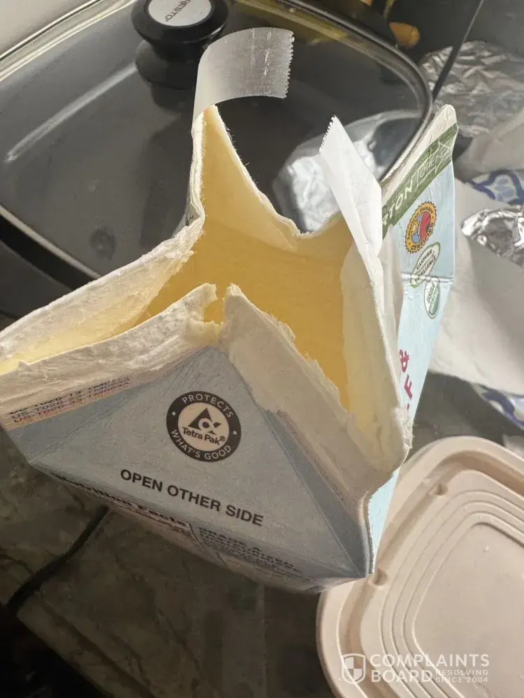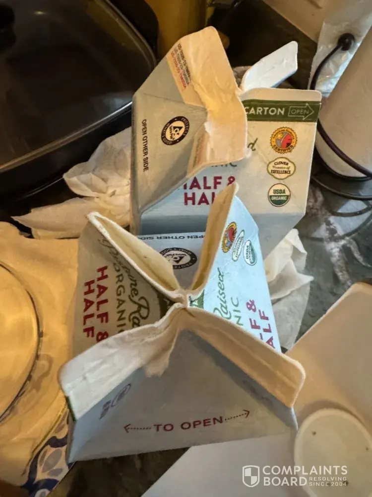 I buy every single month 4 boxes of clover milk from shoprite this month 2 six packs of milk the pouring spout has been broken off and we are forced to use the milk from the bottle and it messes everywhere is this your way of us having to buy extra milk?