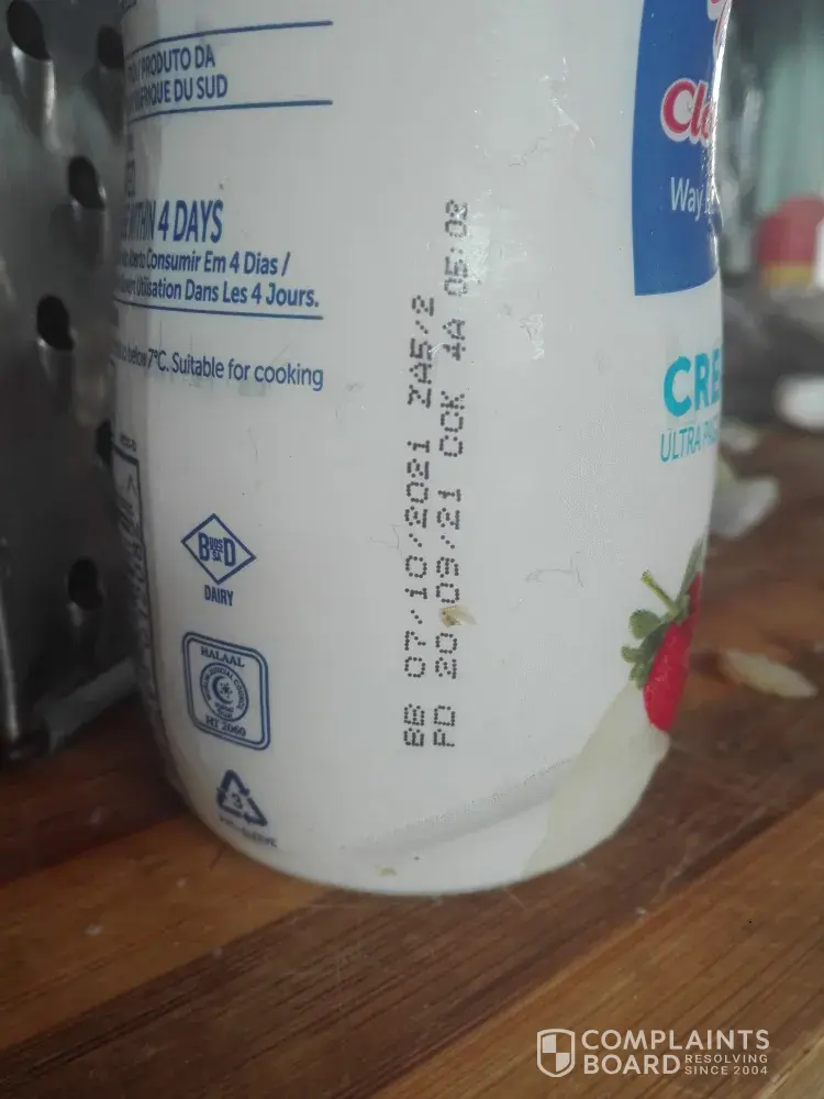 I have just bought the Clover bliss double cream tastes like vinegar 500g from Spar in Newcastle.