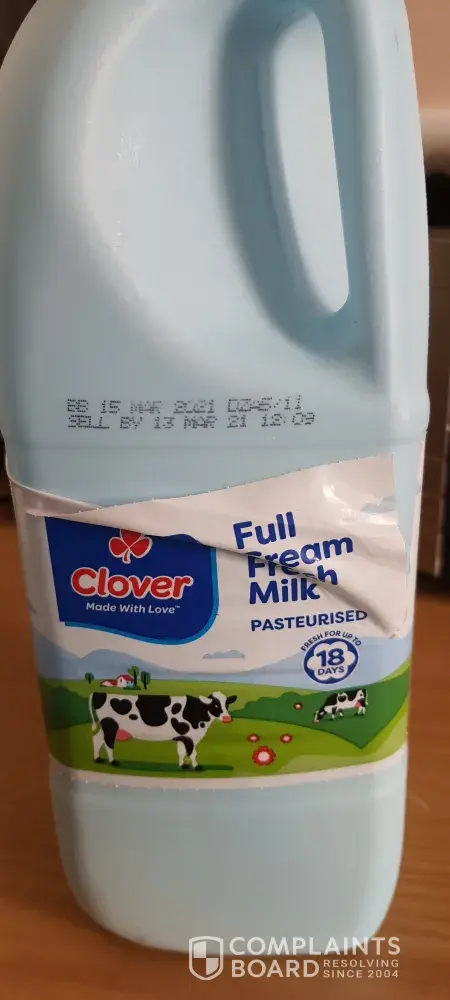 This is the third time on purchasing this clover milk in the 2 litre blue bottle where the expiry date shows 15 March 2021 and was purchased on 7 March 2021 yet it is already sour and gone off. This is extremely disappointing. If quality control tests have been conducted why is it that this milk is always sour. It causes stomach problems when injesting it