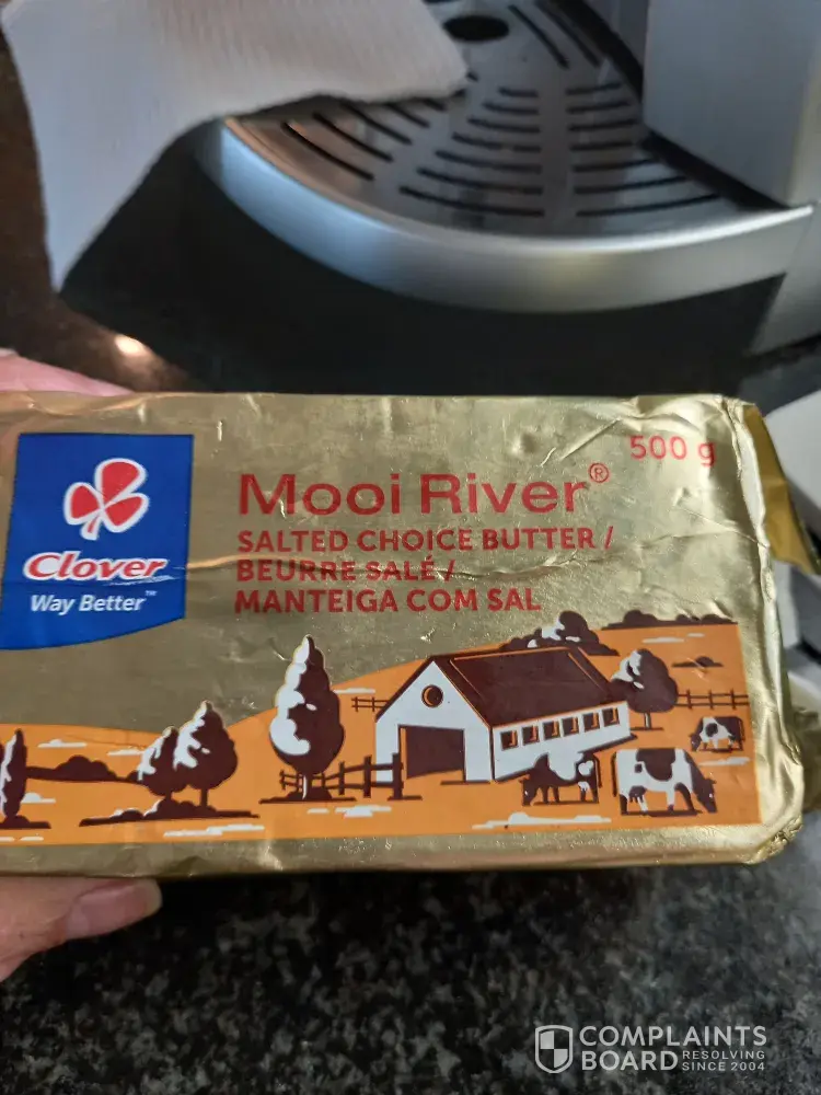 I purchased Mooi River salted butter last week to bake and cook for my birthday party. The butter has got black mould on various places. I have taken pictures and still have the butter as I could not use it. Why is the butter mouldy? Had to go back to the shops to buy some more. It was on a special at Checkers, Davenport, In Durban.