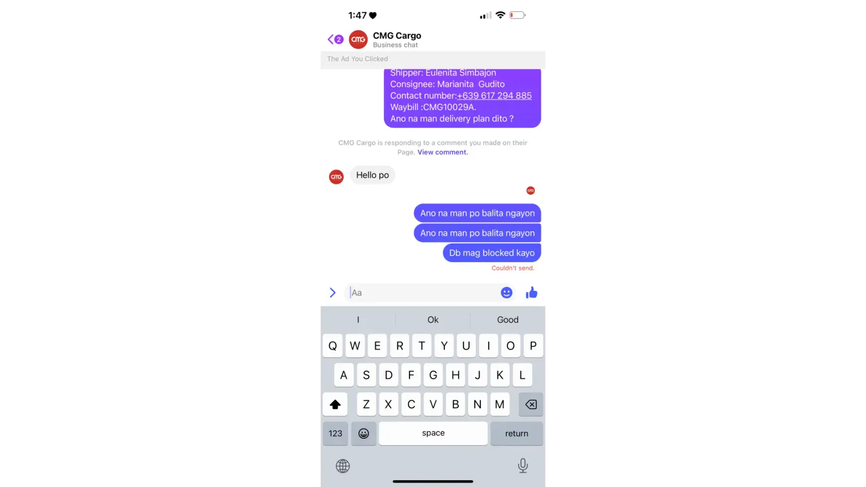 They gave Philippines number but cannot be reached