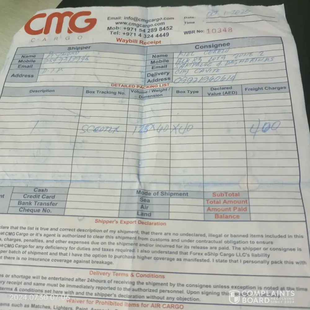 CMG Cargo - Cmg cargo not delivered my box 4