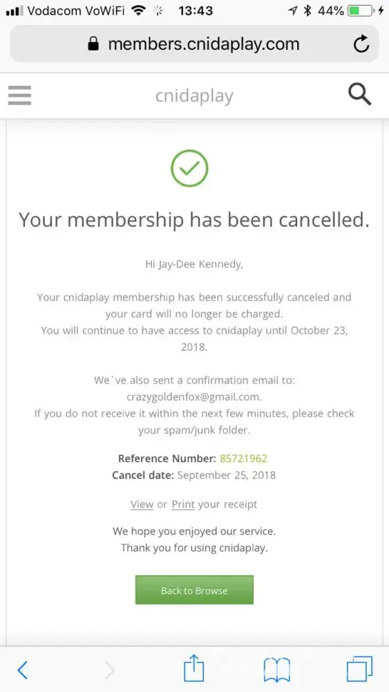 Cnidaplay / Content Roots subscription cancelation.