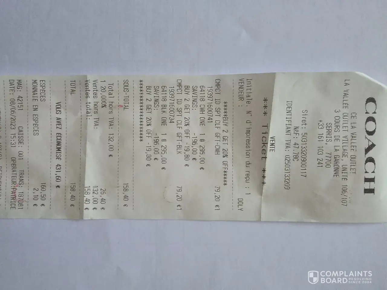 I got cheated by Coach Paris Outlet La Vallee Village staff! Purchase at same day, I got overcharged Euro 48. My friend go buy same thing after my purchase sharing, he paid with cheaper price! The time I joint my husband visit, the sales associate give us a small card with number 002 and payment done by operator CATHERINE, this sales associate is scanning my outfit, praise my bag nice color nice bag, scanning my watch it doesn't look normal, at the end I paid with overcharged! Selling price or promotion with multi standard? Offer not open for every customer? Or my face look more idiot or stupid? For your information, I'm Chinese from Malaysia.