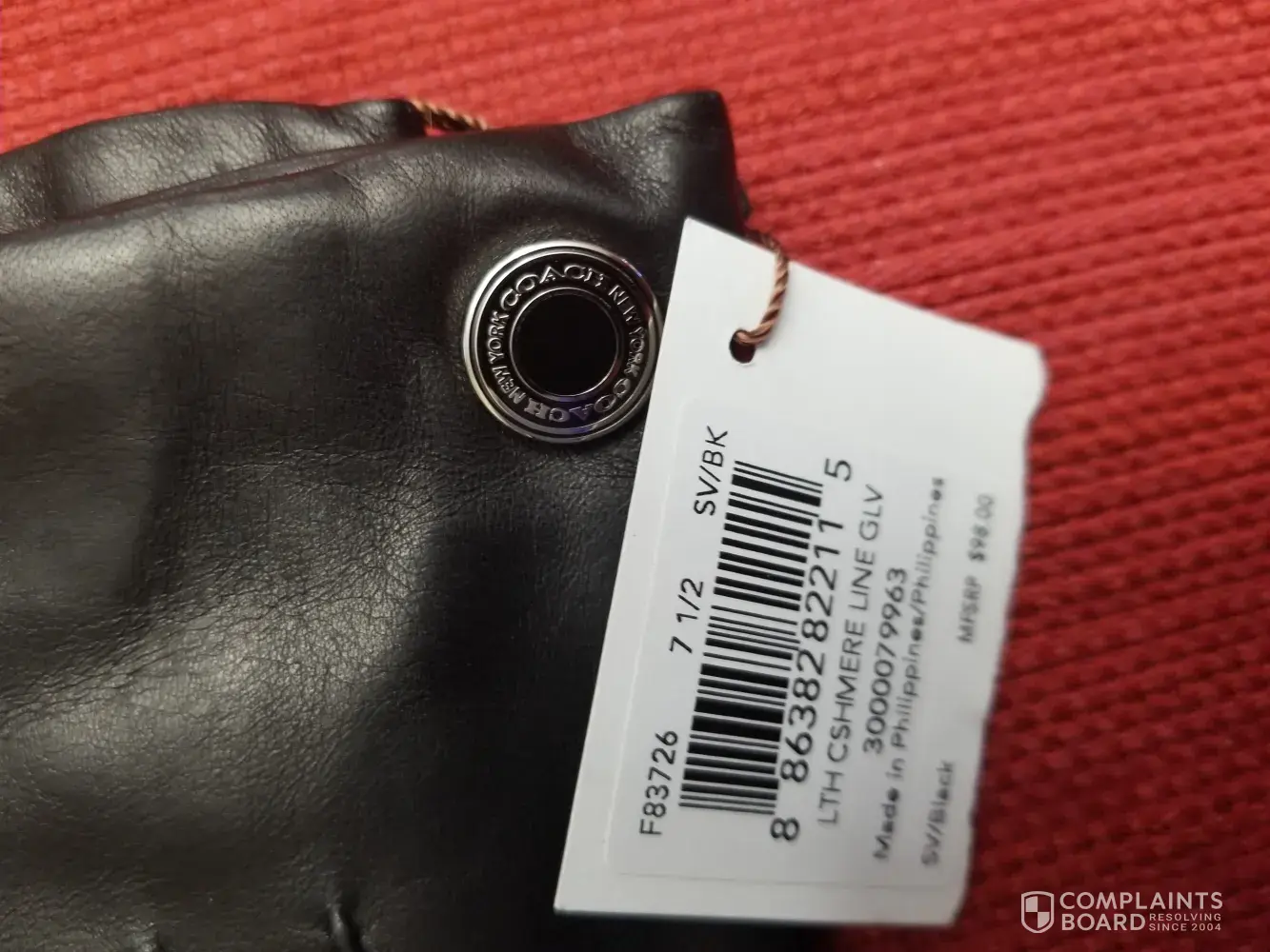I received a black leather cashmere line glove as a Christmas gift. Unfortunately, it did not fit. I took it to the nearest Coach Factory Store in Northern Virginia. I requested to exchange it for a glove that fit. I found a pair that fit, however, the Manager would not let me exchange my glove (more expensive) for a pair that fit (cheaper) because Coach no longer carried the fit that I have. Although, their were 6 pairs of the same glove in their warehouse, he would not let me exchange it for another size. Shouldn't Coach stand by their product? The glove in new, never wore! Product information: