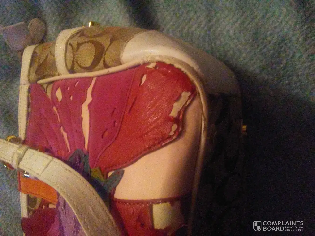 My daughter bought me a Coach purse for my birthday in June. I have been using it for only 1 week now & its peeling off pieces everywhere. Im Very disappointed in the poor quality for the price.