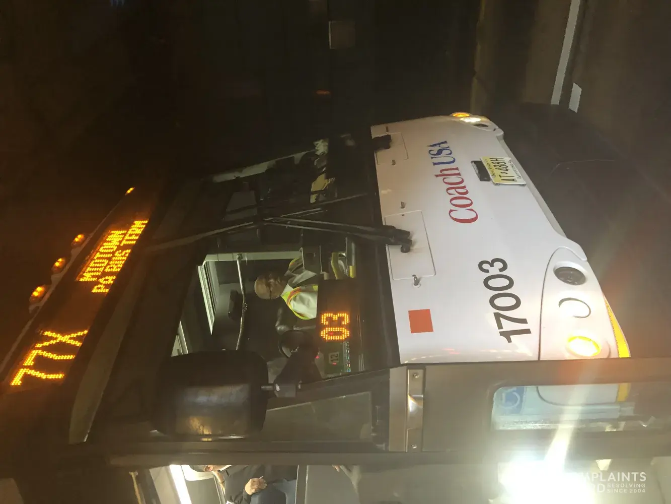 I informed the drive of 77X coach bus when I left the bus and asked for refund of $10. The driver said he didn't get any notice. I said, could you please call your supervisor. He was very rude and impatient. He said, no, I need to run the bus an I am not going to call anybody to find out. I asked for bus number and his name. He said I am not going to tell you my name. Then I took picture of the bus and driver. It has the bus number and this driver's face.