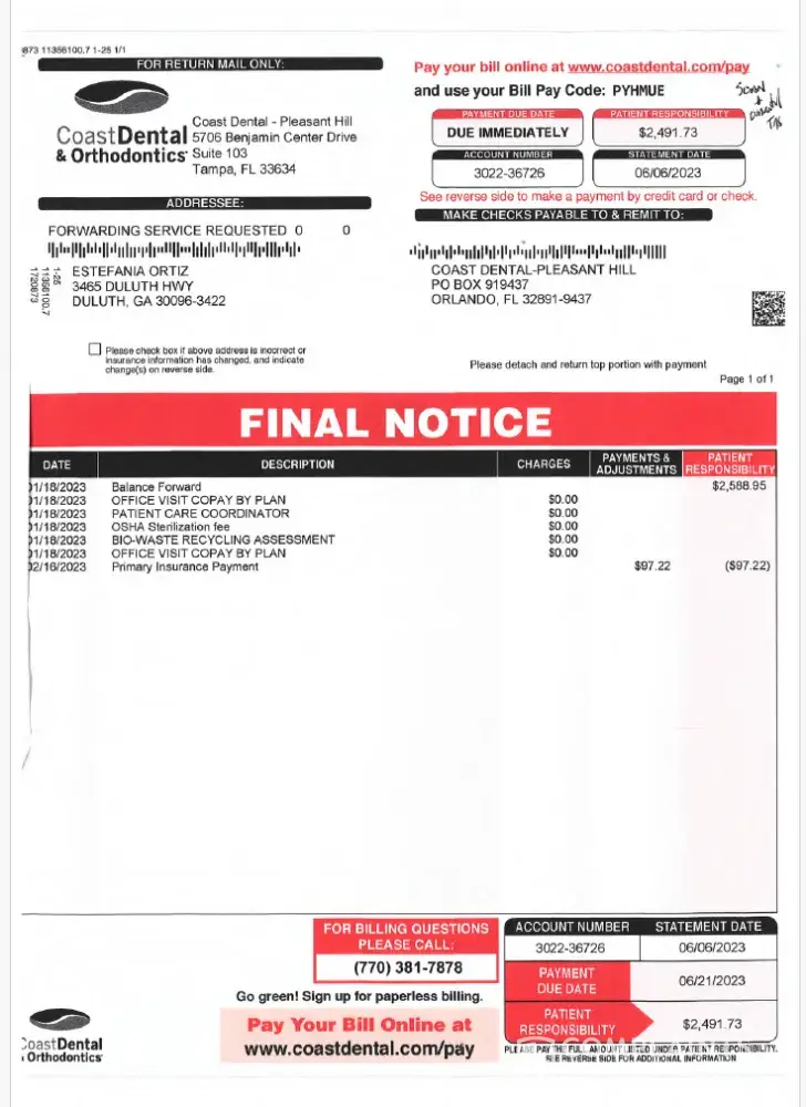 I caught It that they coded and submitted my treatments incorrectly to my insurance. I took It in my own hands to get this correctly submitted to my insurance. This alone was a 3 months long process. Once my treatment was correctly coded, I was told I overpaid. My insurance sent my reimbursement to Coast Dental. Coast Dental NEVER sent me my reimbursement to this day, even though they promised they would. Been chasing them for more than 6 months , and nothing happens. I have read that this has happened to hundreds , if not thousands other patients across the country who used Coast Dental. One word: SCAMMERS!