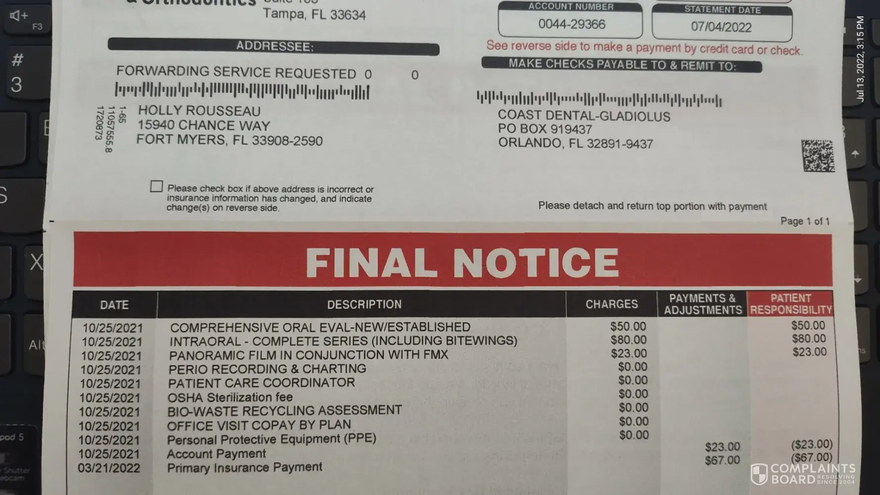 Find another dentist provider, or change your insurance carrier at your first opportunity so you will have different "network" choices. What Coast is doing is not isolated to just one or two individual "complaints."