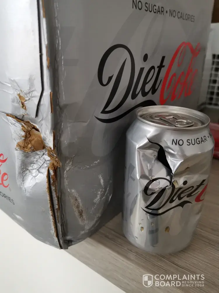 Read full complaintempty diet coke cans found in cartons.