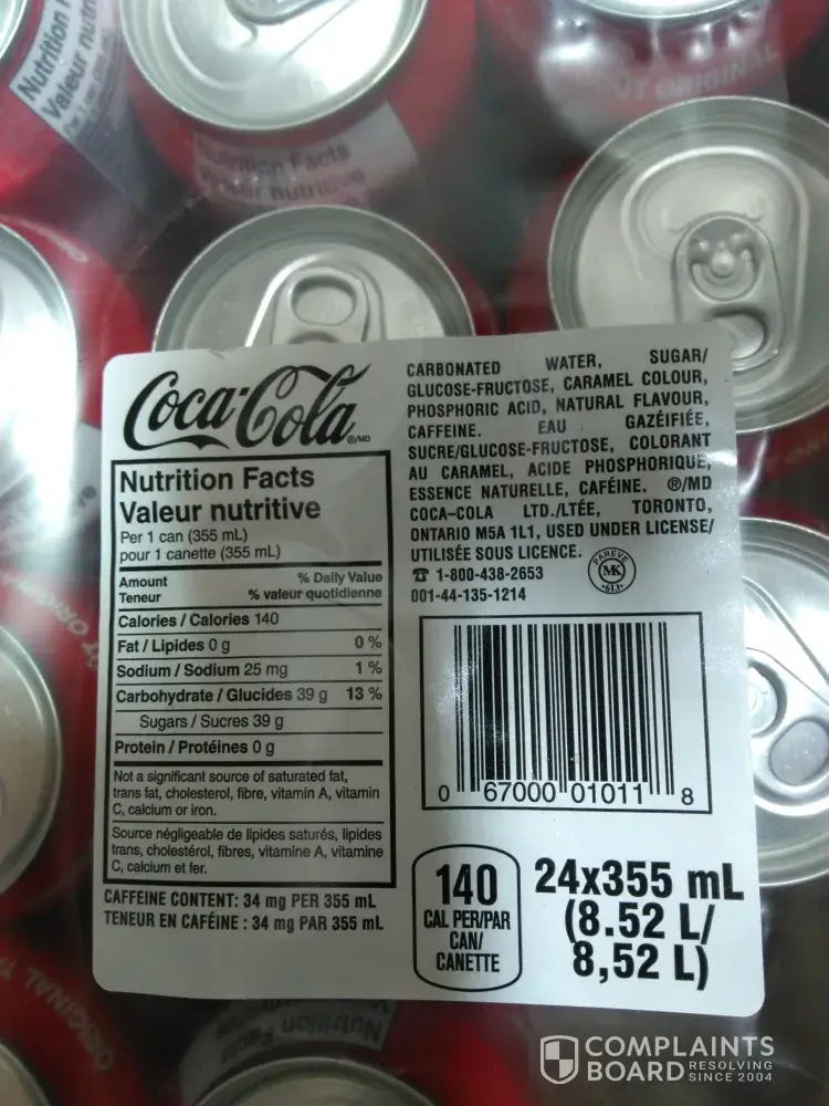 Read full complaint and 10 commentsbottles, & cans of regular coke.