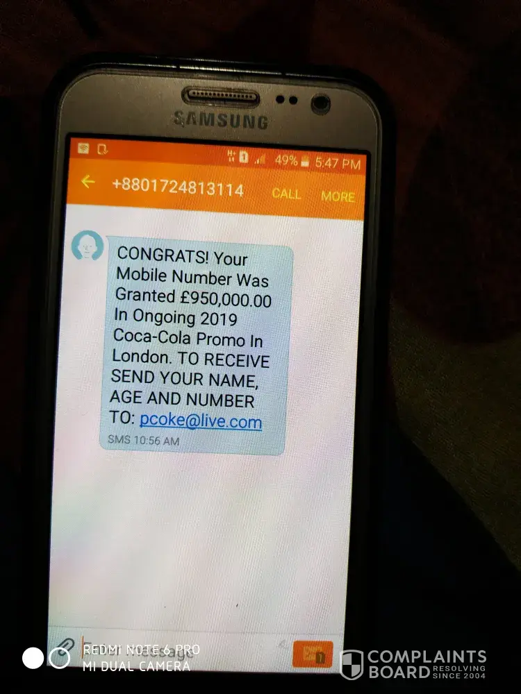 We have conducted the verification process and you have been confirmed by the Coca-Cola e-Lottery Board of Trustees to be the actual winner of the referenced ongoing prize amount worth £950, 000.00. Which is fully based on an electronic selection of winners using their Mobile Numbers! Your name was placed on ticket number; [protected], Serial Number [protected]. This batch draws the lucky numbers as follows [protected] bonus number 15, which consequently won the lottery in the second category.
