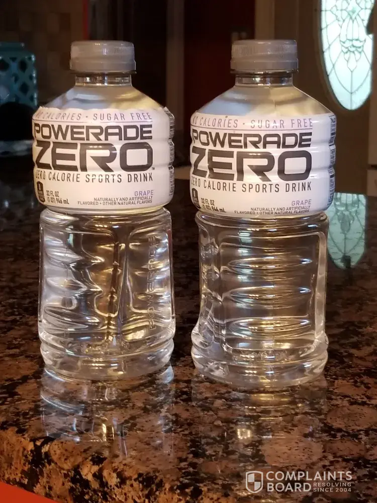 Last week end I bought 2 cases of Powerade zero grape. I always take from the bottom so I can get cardboard trays still covered in plastic. This way they are easier to get home. When I opened the bottom case there were 3 bottles in the middle completely full. With a clear liquid. I have not opened them . I am not sure what to do with them. I don't have my meijers receipt for them. But you can surely tell they have never been opened.