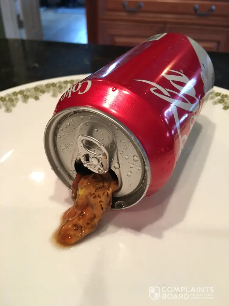 My husband opened a Diet Coke from a fridge pack and a dead wasp poured into his mouth. We have pictures of it to show you. The can had not been previously opened. This is completely gross to have a dead bug pour into your mouth from a can that has been refrigerated for days. Not sure how to rectify this situation but truly grossed out. I have attached the pic!