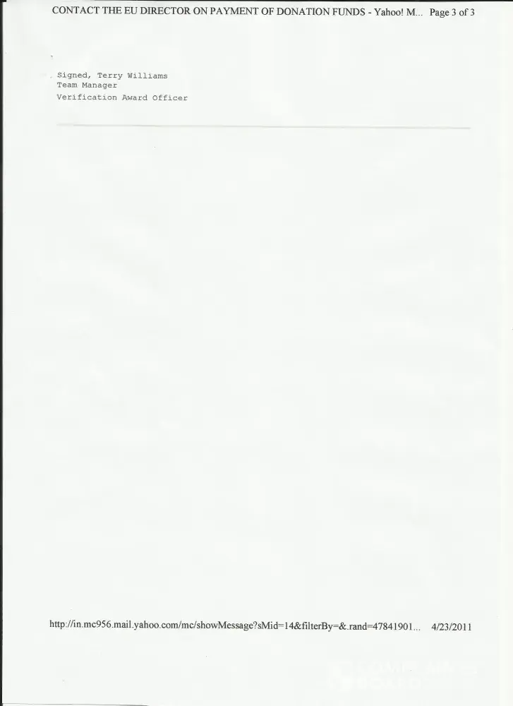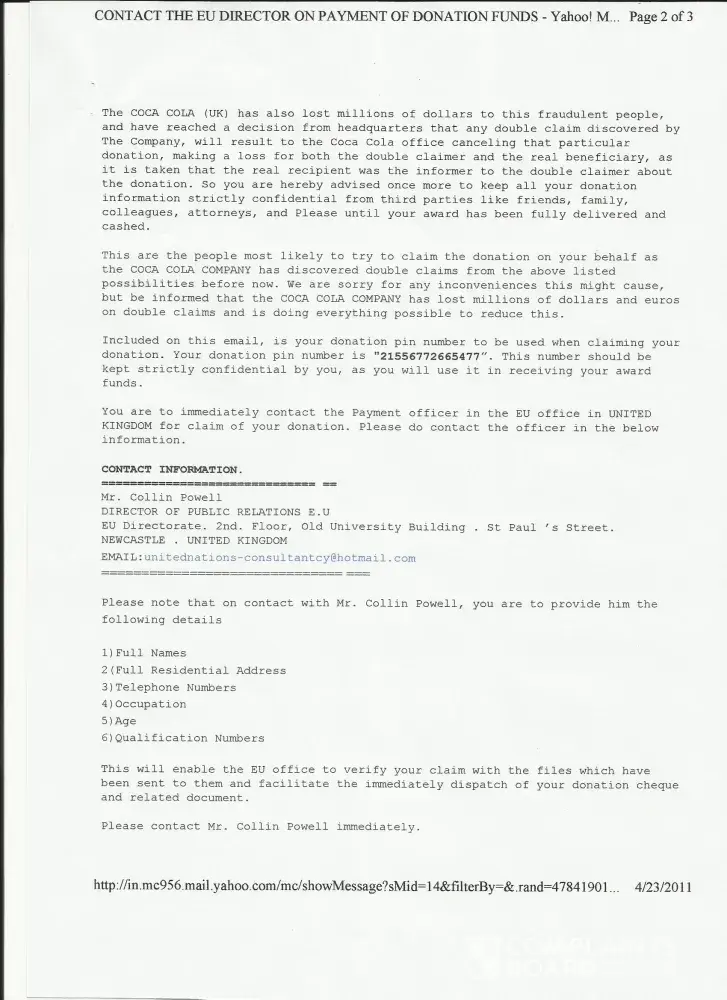 I received an email from coca-cola company on dated [protected], about my winning prize OF J 1, 000, 000.00 one million British pound, monthly 2012 draws held on 4th April 2012,