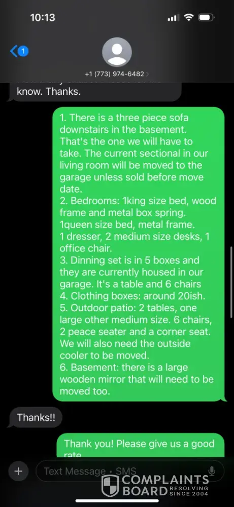 Prior to my move, I provided the company with detailed information about the number of items to be transported. Despite this, they intentionally sent only three movers and one truck, ensuring that the job would take excessively long. As a result, my move stretched from 8 AM to 8 PM, significantly increasing my costs since they charge by the hour.