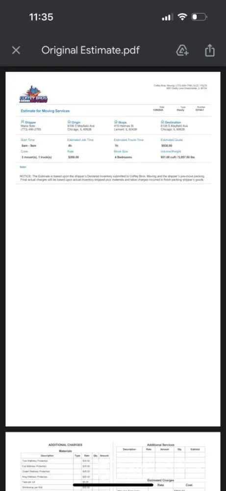 I am writing to formally file a complaint against Coffey Bros Moving due to their deceptive pricing practices, gross mismanagement of my move, and overall unprofessionalism. This company engaged in predatory business practices that resulted in me paying nearly $4,000, despite initially being quoted only $900.