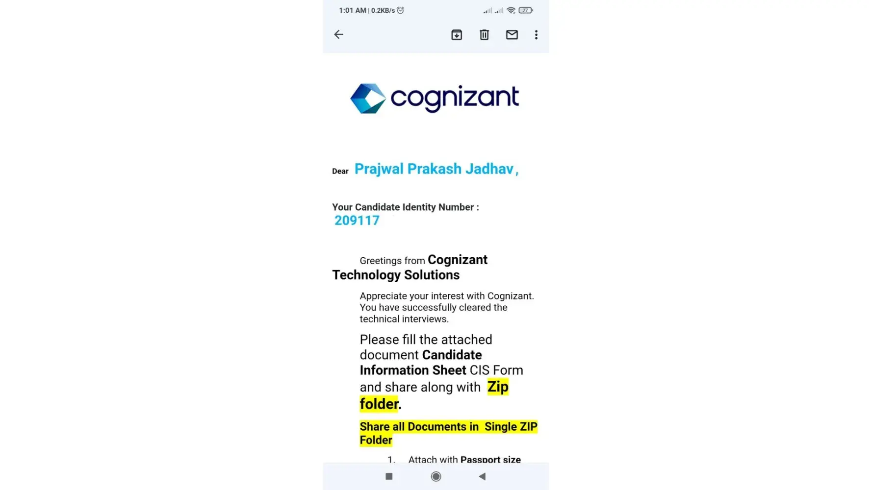 I had interview with CTS on 18 th November 2021. Then I got mail from Amritha.[protected]@cognizant.com to upload cis documents. I uploaded all the documents.