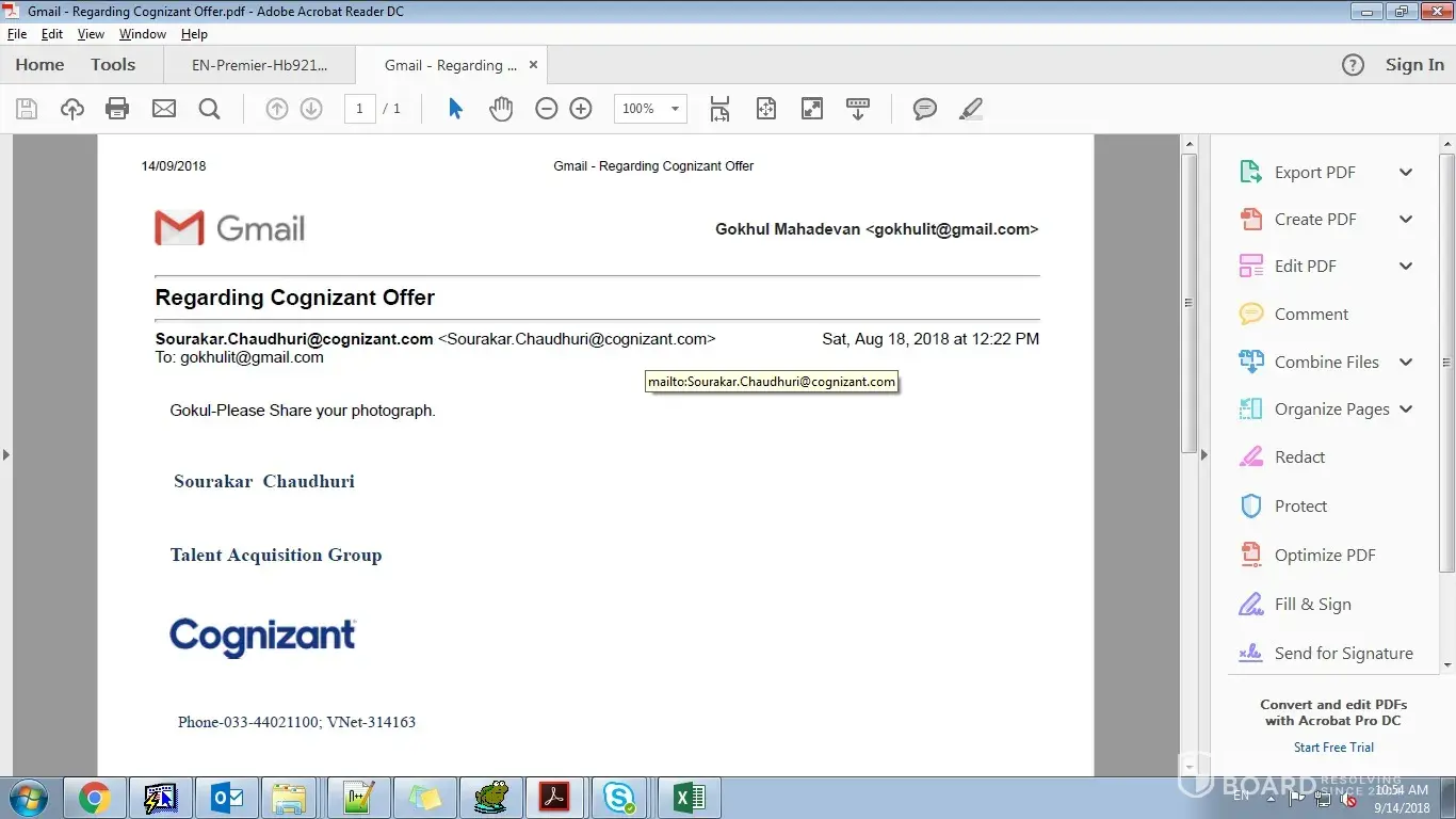 Hi Cognizant Team, I had attended interview on 07/07/2018 and completed three rounds(2 Technical & 1 HR round) on same day at Varalakshmi Tech Park, Kandanchavadi for PLSQL skill. Also I got mail from Mr Sourakar(Sourakar.[protected]@cognizant.com) on 18/08/2018 with subject 'Regarding Cognizant Offer' and 'Ask for my Photograph'. Already it crossed two...