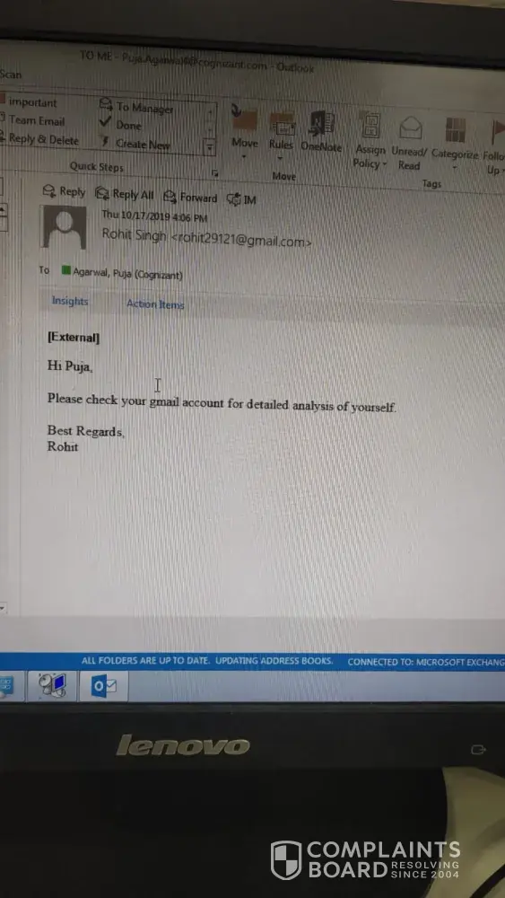 Cognizant I am complaining about an employee name anupam pradhan he works as application development analyst n cognisant