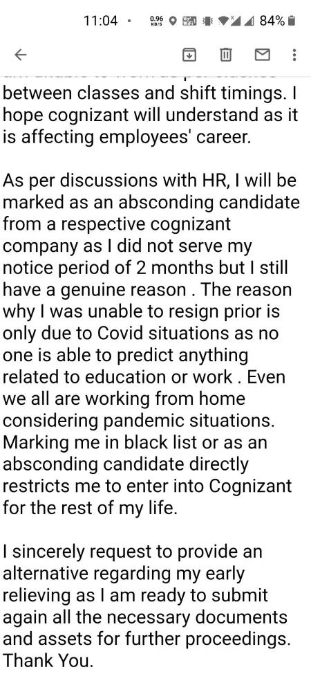 But I still have some hope on HR department because while you guys have recruited me you are so professional and helpful. I will not blame cognizant for this because MNC like Cognizant providing shift allowance is not big deal for them.