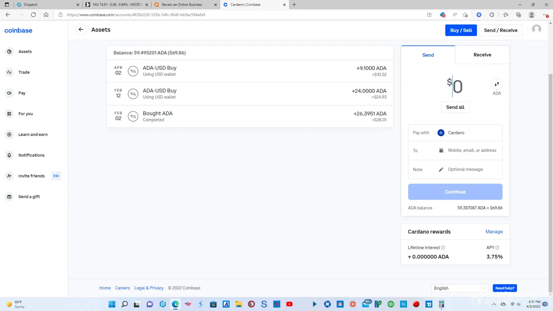 Had ADA and was collecting rewards then out of nowhere they disappeared. Rates changed to 10% of what they were for ALGO and contest entries were never confirmed after buying and selling double the requirement. Coinbase was supposed to be safe and secure but feels like crooks on WallStreet have taken over stealing factions of dollars from millions of people adds up daily. Just glad I did not stake ETH, something funny about you may lose all of your investment, which is "unlikely to happen" (then why the disclaimer and removal of liability to Coinbase). Coinbase wallet has a similar disclaimer "Coinbase is not responsible for funds lost on Coinbase Wallet" then why use the Coinbase name and portray it as a product. I believe this is a less than legal business plan to provide Trademarked products that "Coinbase is not responsible for". If it has your name, is being promoted, and is provided directly on your product then how are you not responsible? Do you not have the same faith/belief in the products that your pushing on the masses works. Exploitation of the poor and working class, waste our time and money not yours to fine tune individual algorithms that do not match the market, because the unicorn that is Coinbase is its "own market". This is how to print money for someone/company with way to much money. Not a free and unrestricted currency for the masses as crypto is supposed to be but a syphon for your wallet. Invest in pet rocks before Coinbase at least you will have something to show for it.