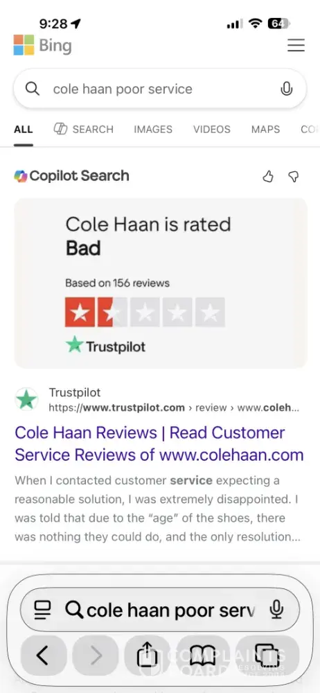 Cole Haan resolved 94% of 17 negative reviews, its exceptional achievement and a clear indication of the company's unwavering commitment to customer satisfaction. It would suggest that the company has invested heavily in customer service resources, training, and infrastructure, as well as developed an effective complaint resolution process that prioritizes customer concerns.