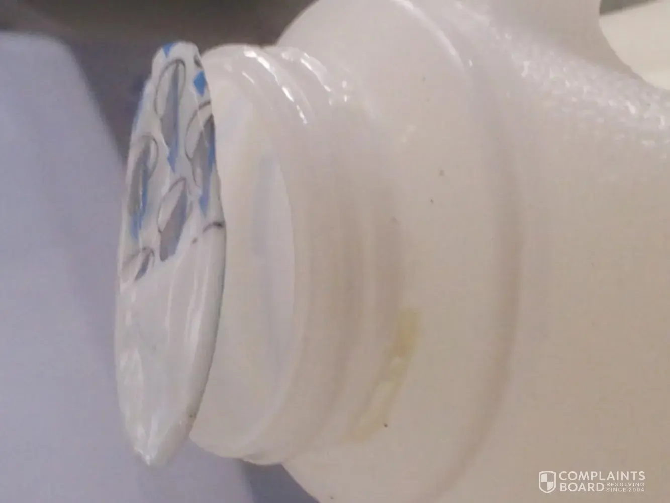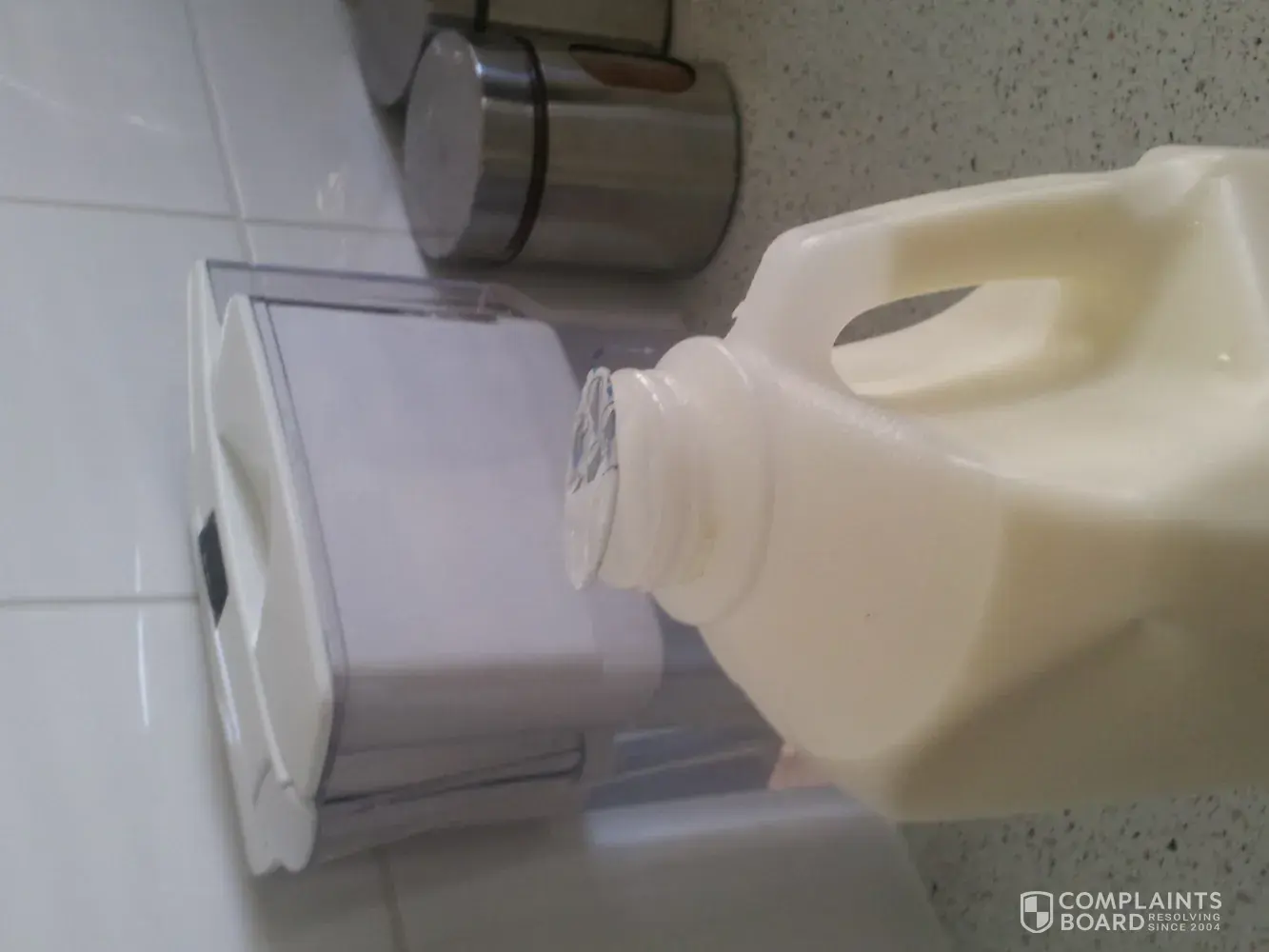 My husband purchased Milk last night and the bottle of milk leaked in our car making quite a mess . When we opened the bottle the seal on the top was not even stuck down. Not happy about the mess we had to clean up and hope it has done no damage. Milk was use by 13 Oct 2015 VI batch no 272 20;57. Seeking a refund- milk and Vanish carpet cleaner.