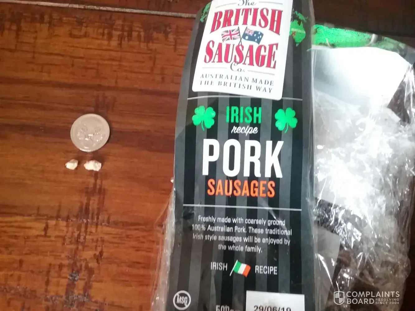 I purchased this pack of sausages from Coles Bridgewater on Friday 21/06 and cooked them this morning.