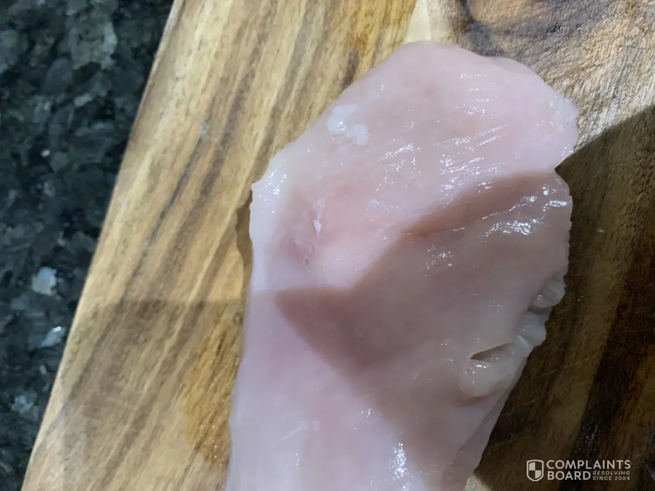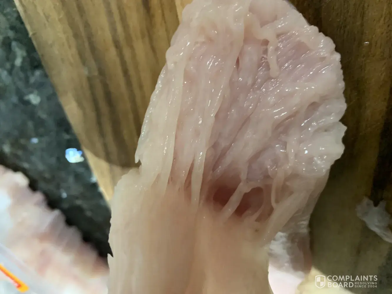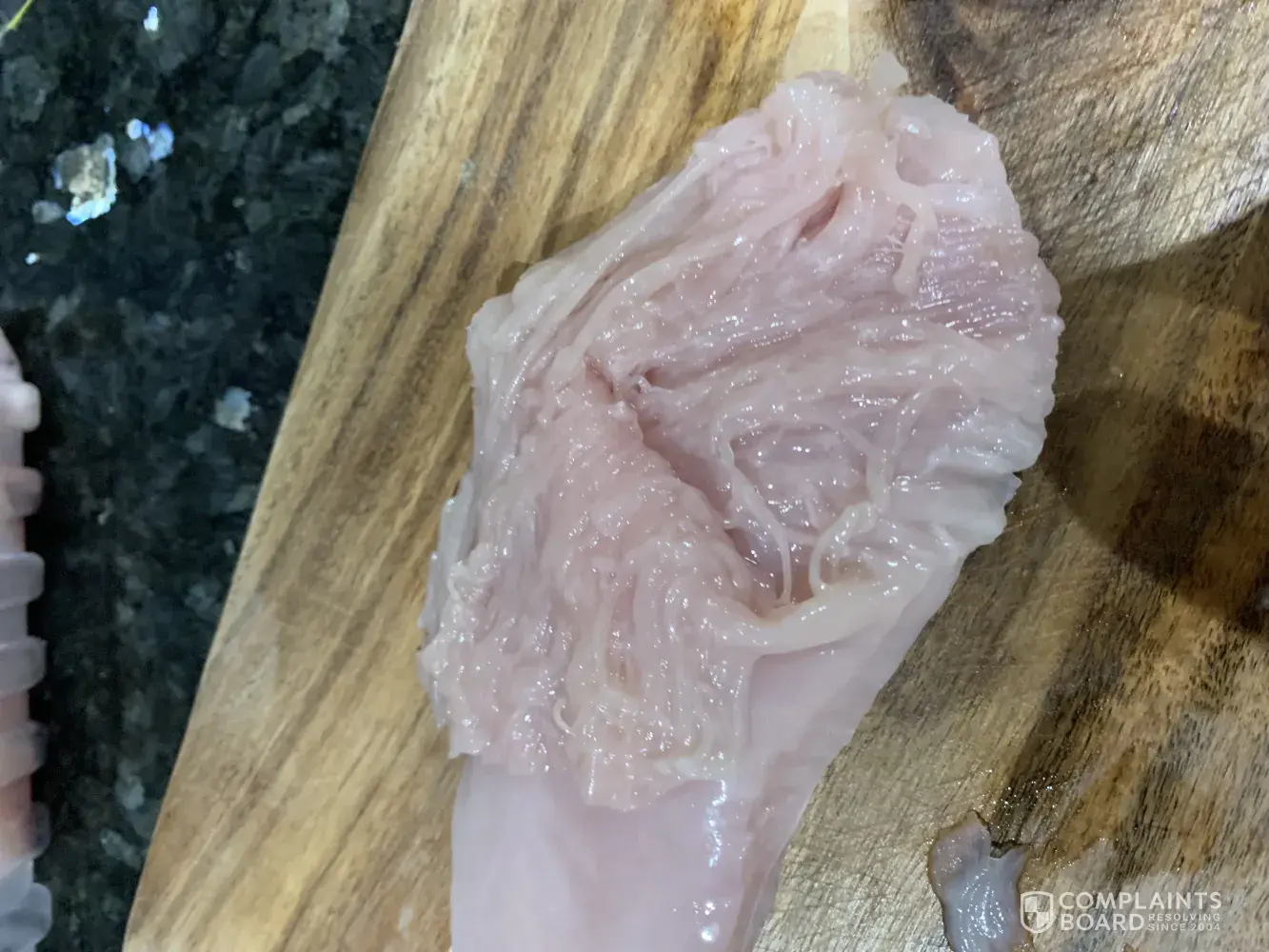 Just sliced into the end of the chicken breast I purchased this evening to make dinner, however I notice something odd, do you know how much brine has been used in just one small chicken breast for it to have been this stringy whilst raw?