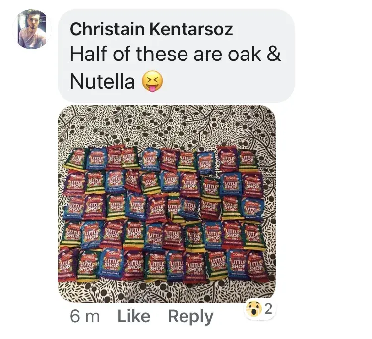 Christian kentarsoz posted on facebook how his sister works for coles and has over nine boxes at home of little shops also posted a photo of 50 unopened little shop packets half nutella and half oak which he was going to sell how is this right when we shop hard to collect these things at $ 30 for 1 and people like that get them so easily. Not very happy.