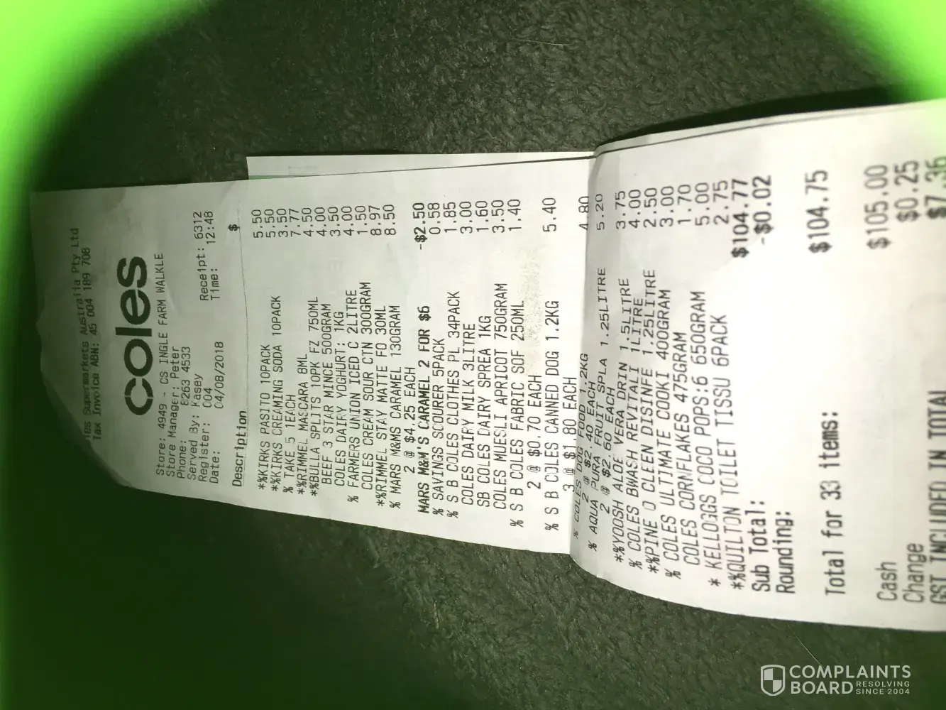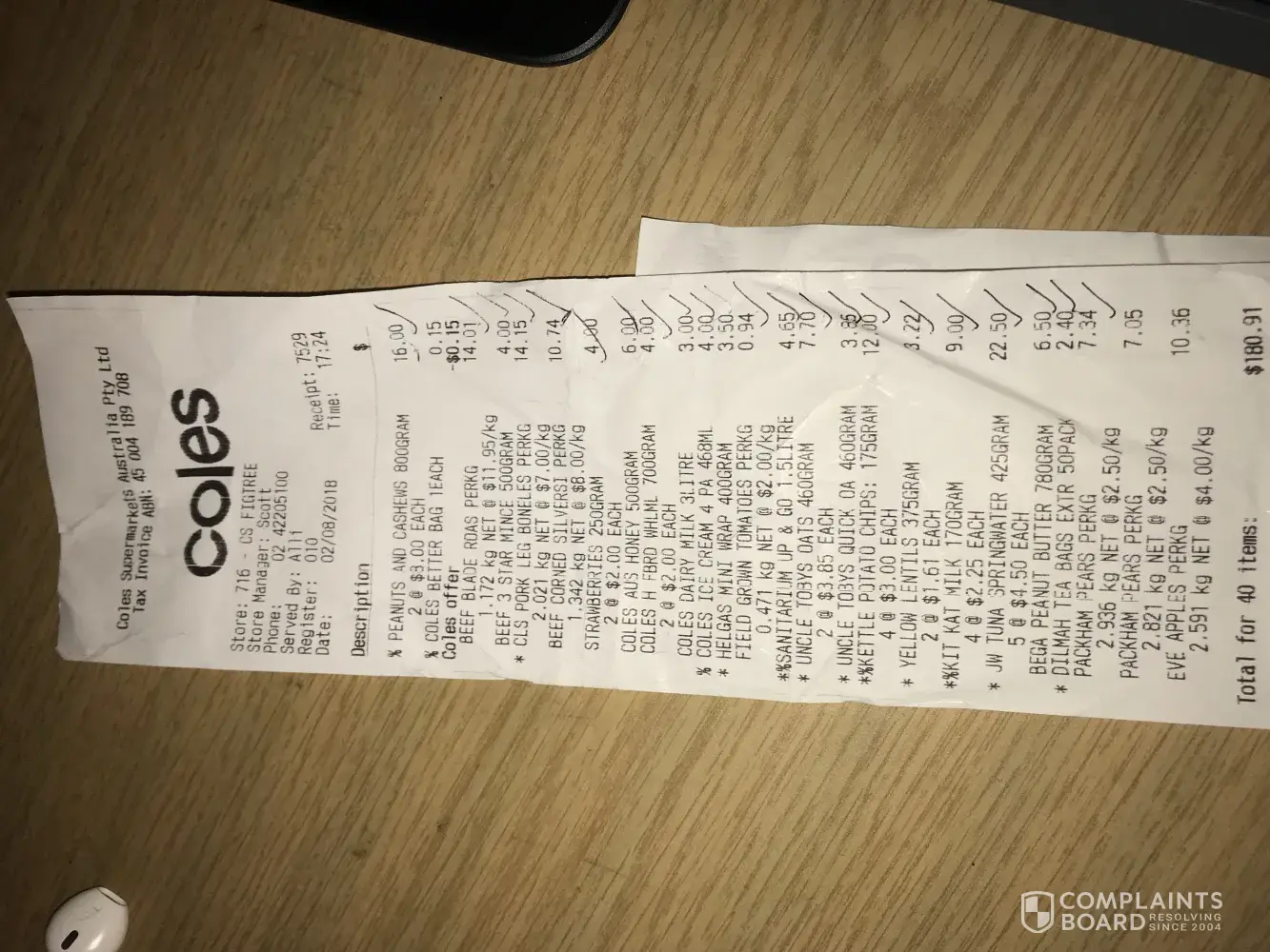 Today, 2nd of August 2018, I visited Coles supermarket in Figtree, NSW to buy groceries. I was served by a nice lady named Alli and she might have scanned the product Packham pears twice by mistake. I checked the invoice after I reached home and realised that I paid twice the amount of price of pears I actually bought. I need compensation for the loss I faced. Thanks.