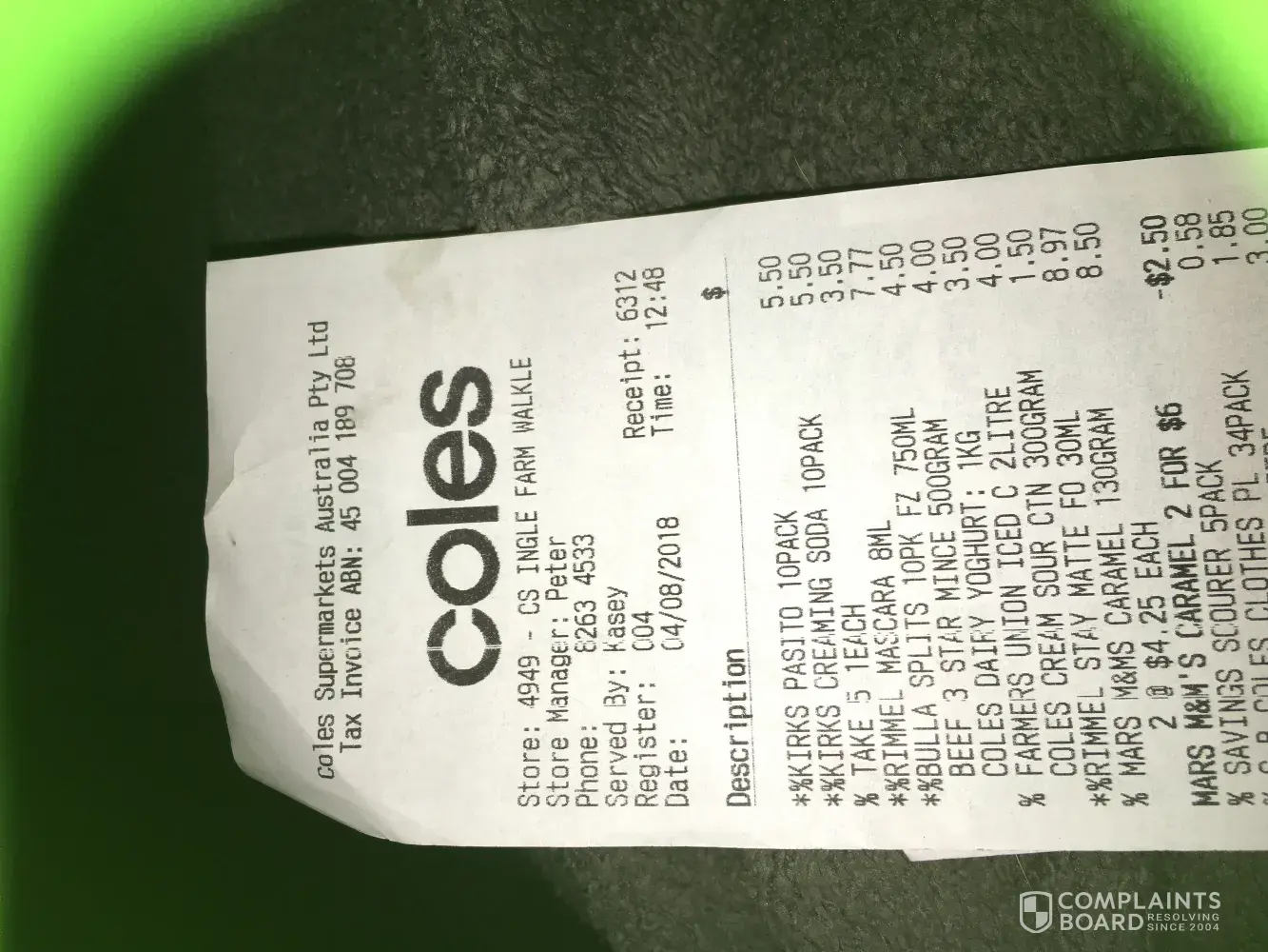 It isn't my fault that the staff had stuffed uo and put the wrong ticket in the location or had put the karicare goats milk in the spot of the coles brand formula.
