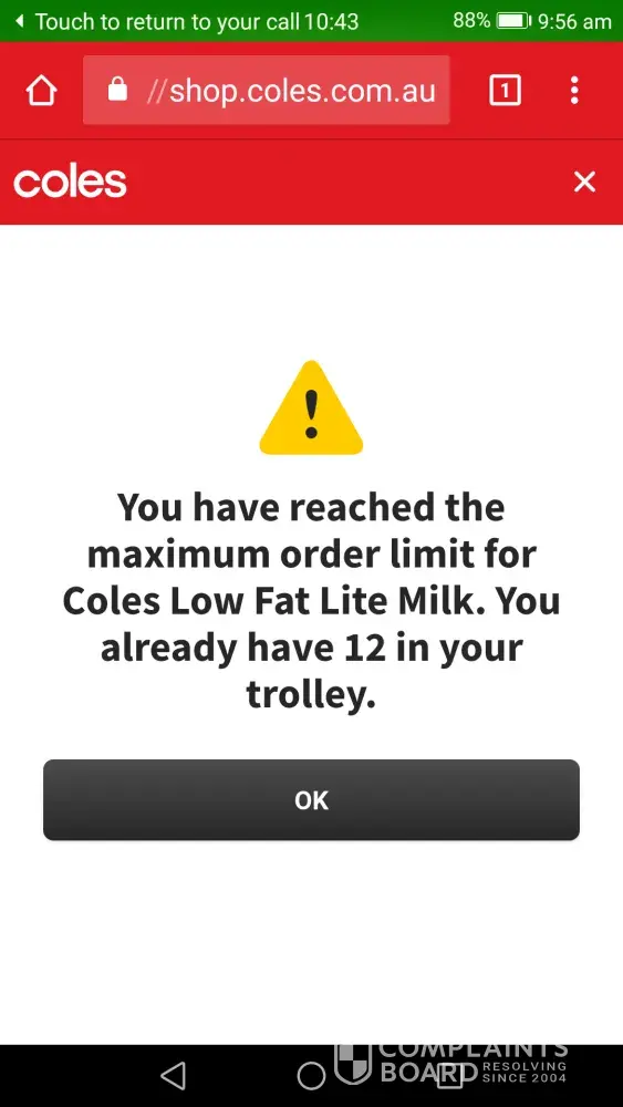 It's happening in Largs North SA all the time, late deliveries, driver's with attitude, missing items all the time, items marked for substitution not replaced like coffee toilet paper, essential items, I purchase for a fortnight and for the past five years have been ordering 15 litres Coles uht lite milk, since the plastic bag issue, bear in mind that I have a massive amount of reusable bags that they refuse to take, I went to go through check out yesterday and they have put a restriction on the amount of milk that I can purchase, I am now only allowed 12 litres a fortnight as a big sign comes up going through checkout saying this is a bulk order remove excess, I don't drive this was the only way I could shop, now I have to find another way or run out of milk, heaven knows what other changes are about to take place but I'm expecting many, I ALREADY HAVE REUSABLE BAGS, I don't need or want to pay every fortnight for new useless thicker plastic bags which they won't take back to reuse for my next fortnight's shopping