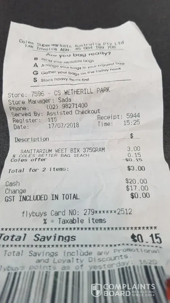 I do my shopping with Coles now and then and am quite satisfied until yesterday.