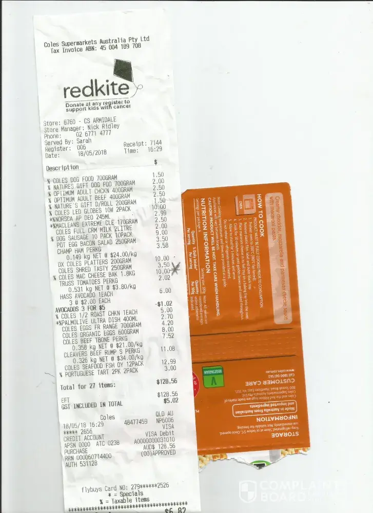 I took the fish back to the Marsden Coles and spoke to the store Manager Thursday 3rd May 5.30 PM after work and this young guy seemed disinterested and said I will give you a refund.