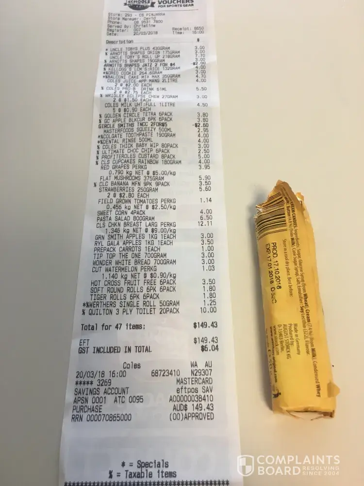 Am waiting to hear response from manufacturer and Coles supermarkets
